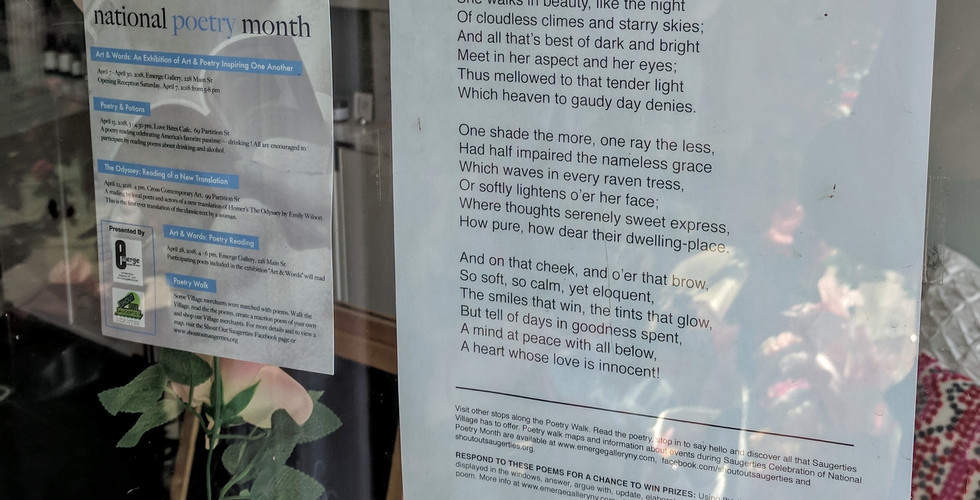 Saugerties celebrated National Poetry Month throughout the month of April with various poetry readings and a curated poetry walk through the village. The month offered an opportunity for the public to experience how powerful and accessible poetry could be.